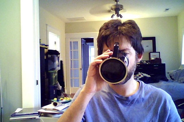 First cup Uncategorized I have been operating on very little sleep for the past three days. Last night, though, Anne Marie let me sleep for twelve hours straight. All hail the wonderful wife!
